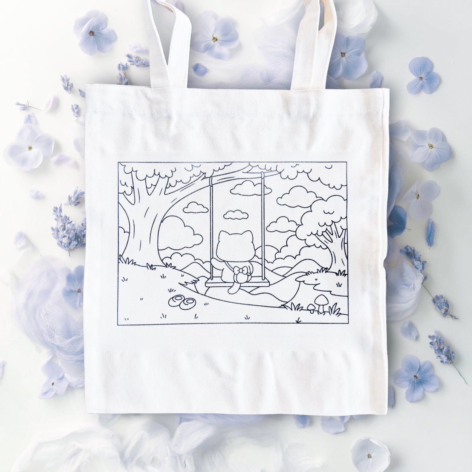 Featuring an adorable scene of Gnocchi enjoying a swing under dreamy skies. This tote brings a touch of storybook charm to your everyday. Made with soft yet sturdy cotton, it’s perfect for books, market finds, or little treasures, turning even the simplest errand into something magical.